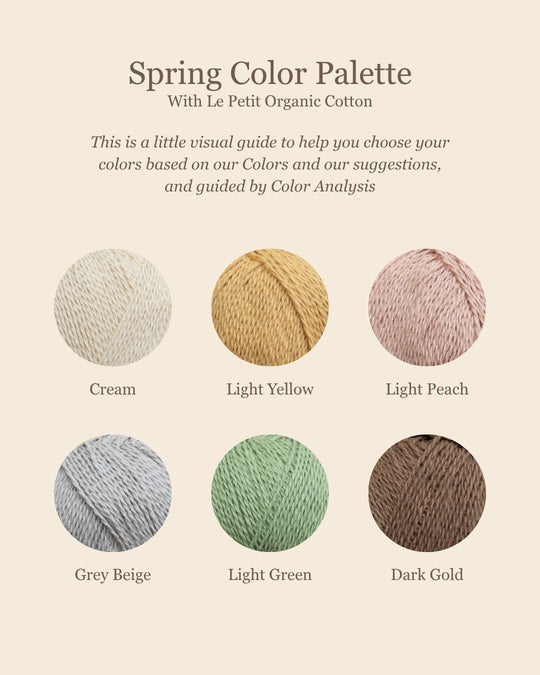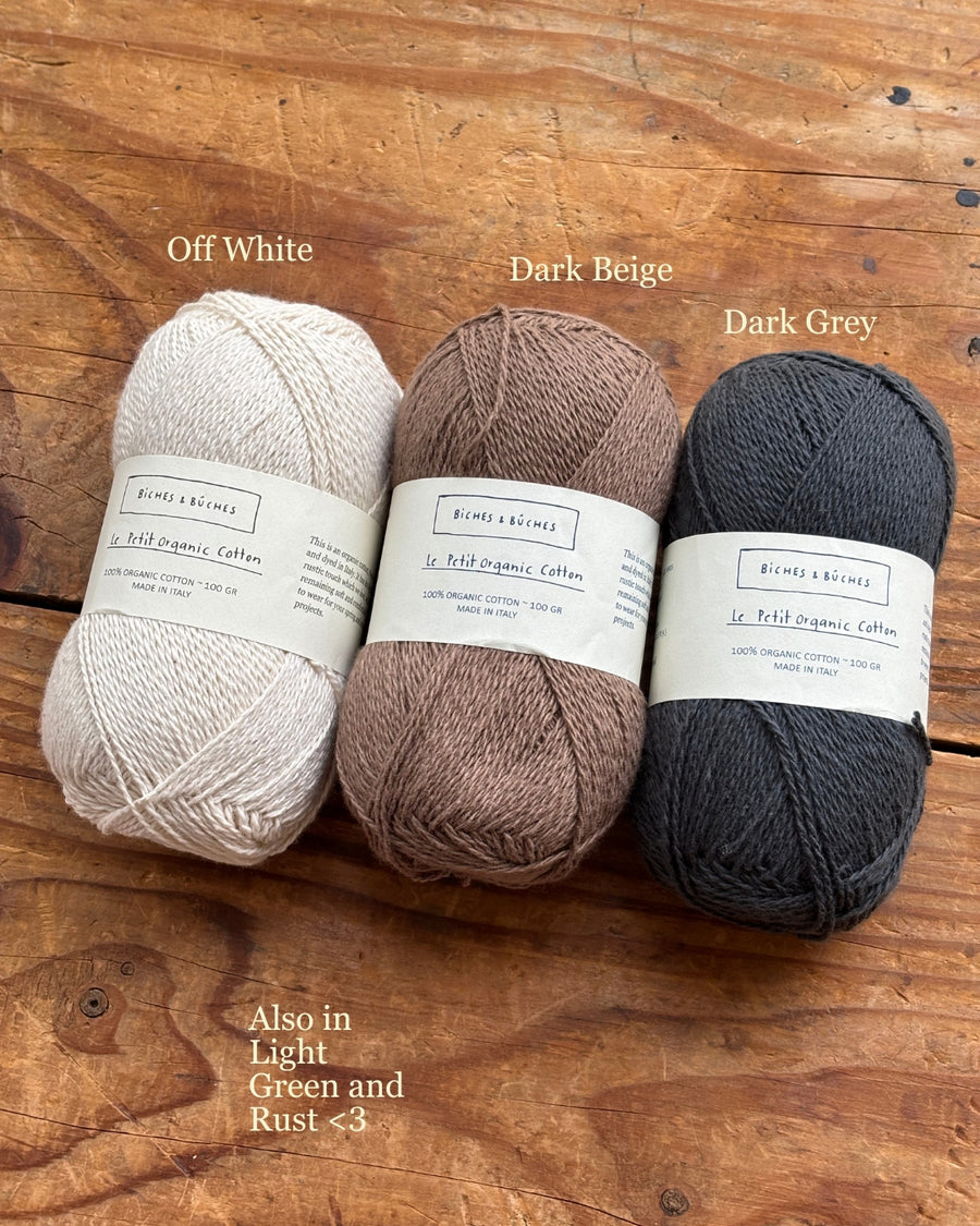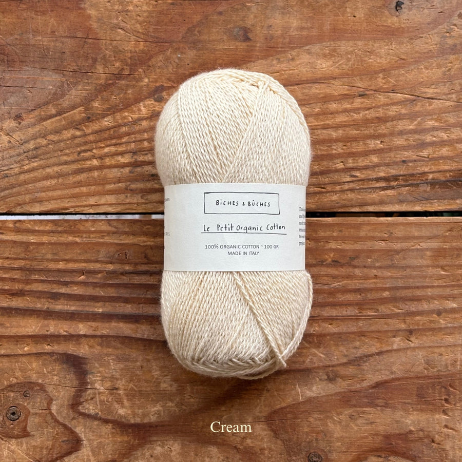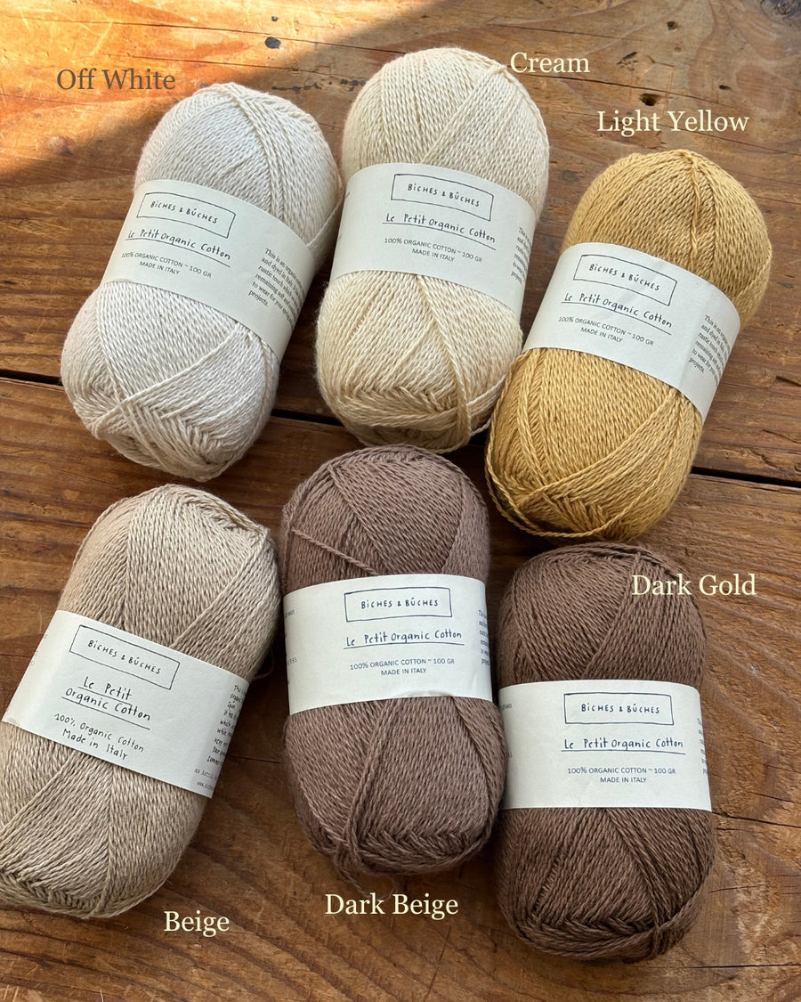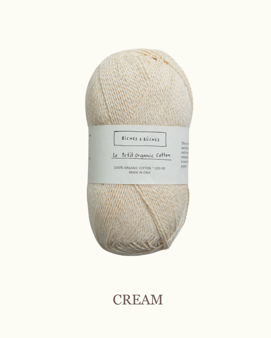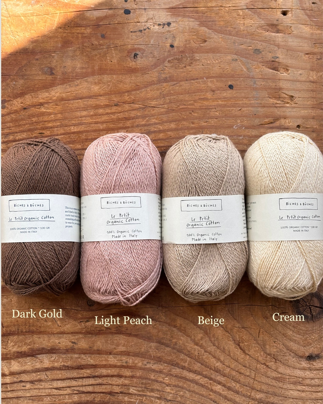 Le Petit Organic Cotton est notre beau fil de coton, 100% bio, filé en Italie. Un toucher doux avec sa petite touche rustique et naturel.