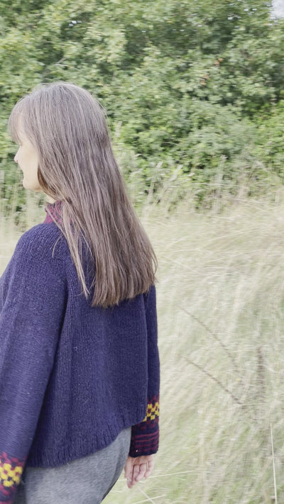 Un modèle très cosy et élégant à la fois, avec son bleu profond, réhaussé par ses détails jacquard en bordure de manche et de son col.