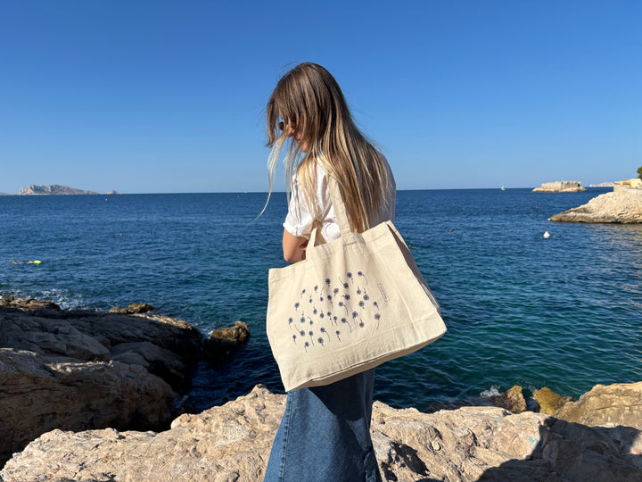 Le premier Cabas Biches & Bûches, beau et grand, pour transporter en-cours, pelotes de laines et pulls, en voyage ou au chaud à la maison 🐚
