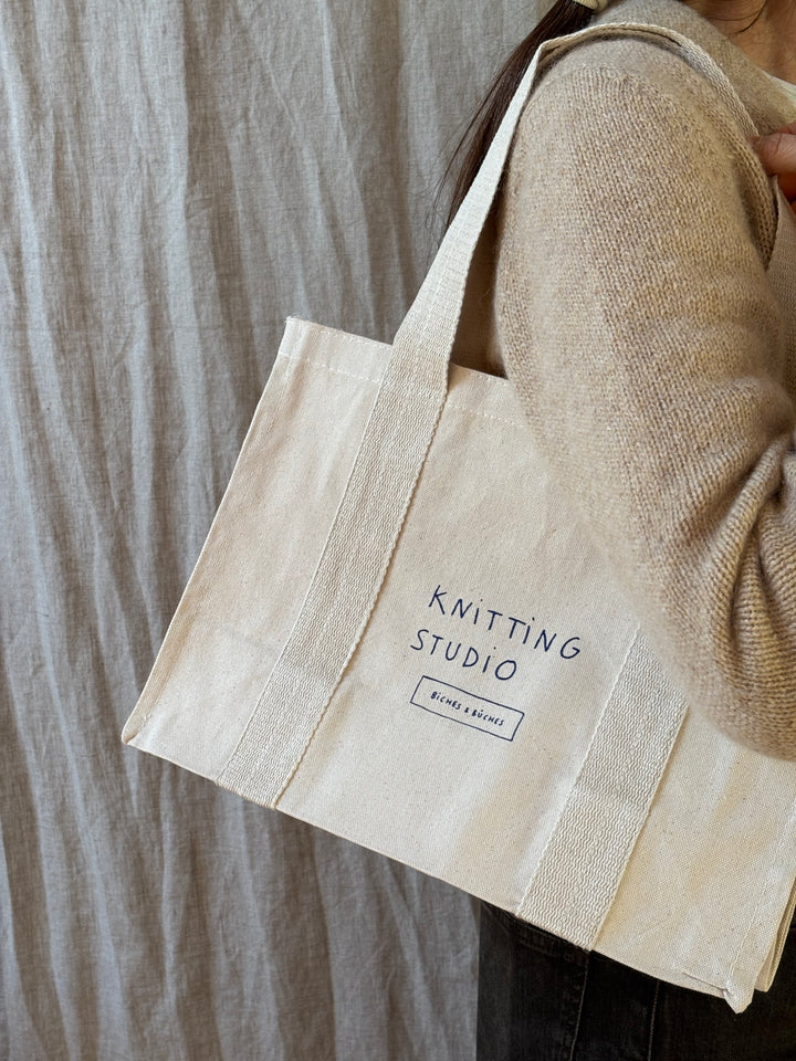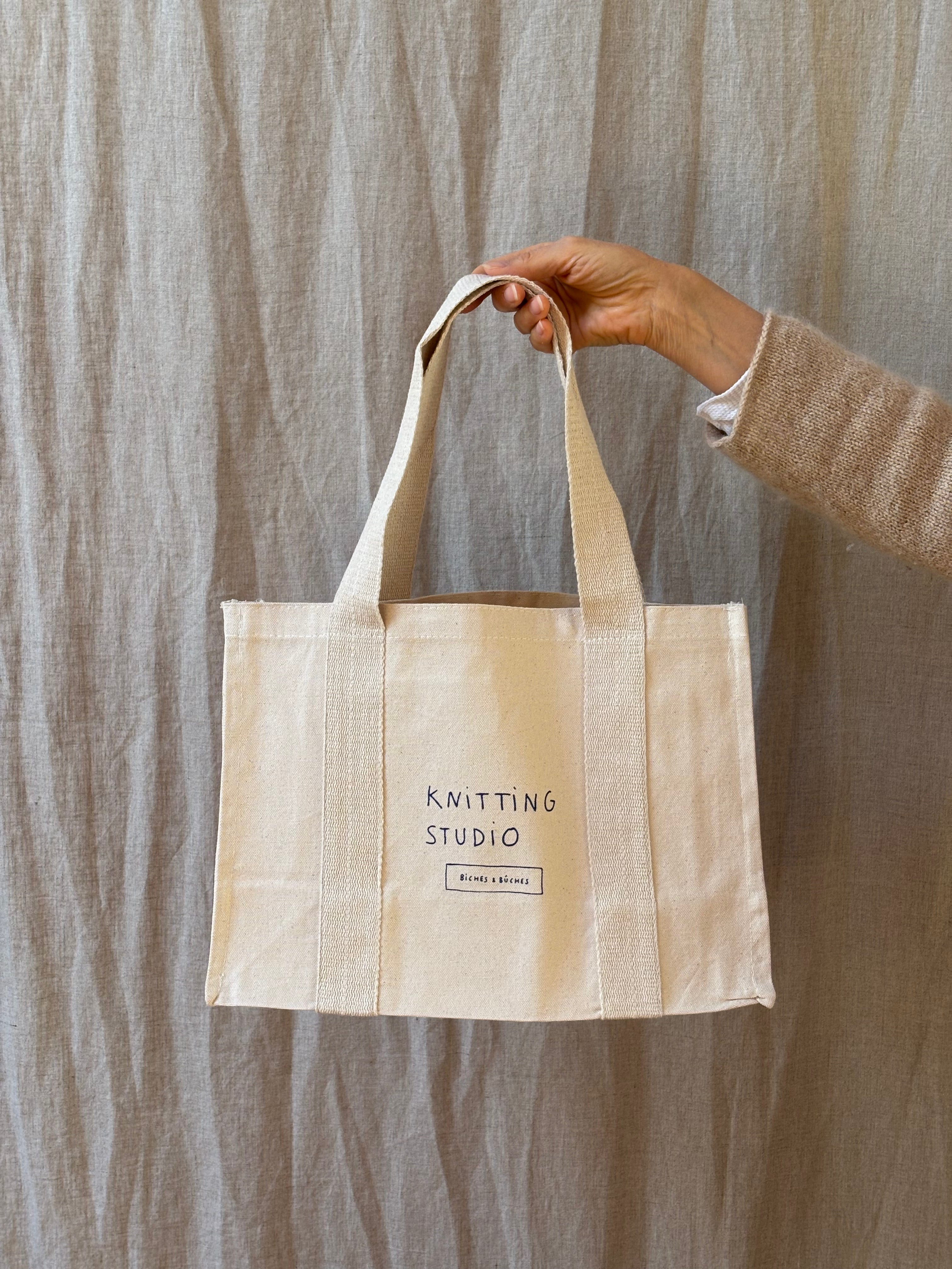 Le mini Cabas Biches & Bûches est réalisé dans un Coton Naturel épais, tient debout, a de larges anses confortables et une longue poche intérieure 🐚