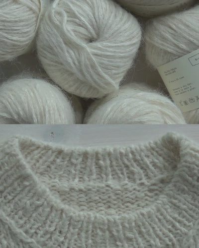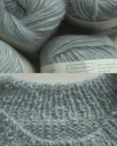 La laine, de par sa composition, donne un léger effet d'irrégularité dans le tricot (que vous pouvez voir sur les petites vidéos), un effet que nous aimons beaucoup. Contenant de l'Alpaca, ce qui la rend si douce, elle peut légèrement boulocher - nous conseillons de manipuler le pull avec soin pour qu'il garde son meilleur look 🐚