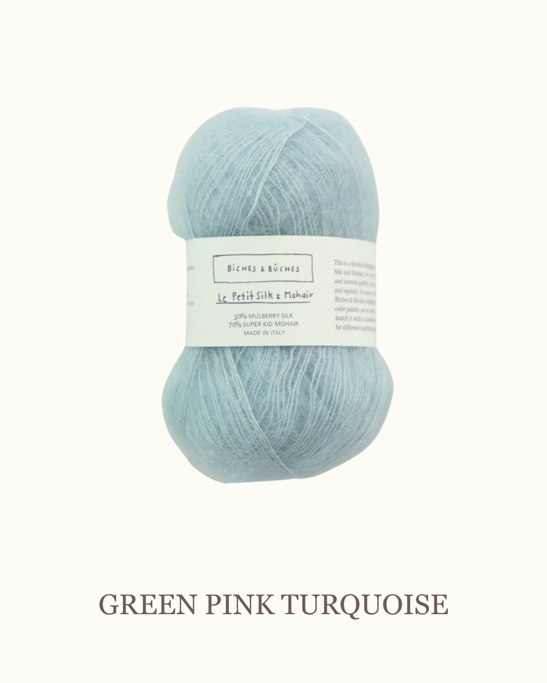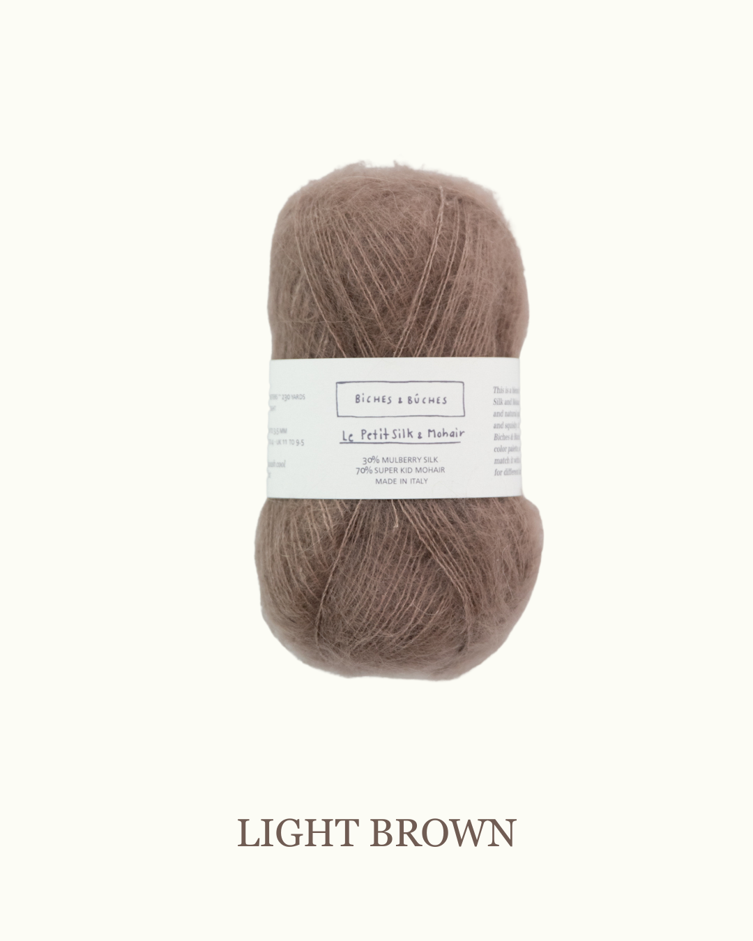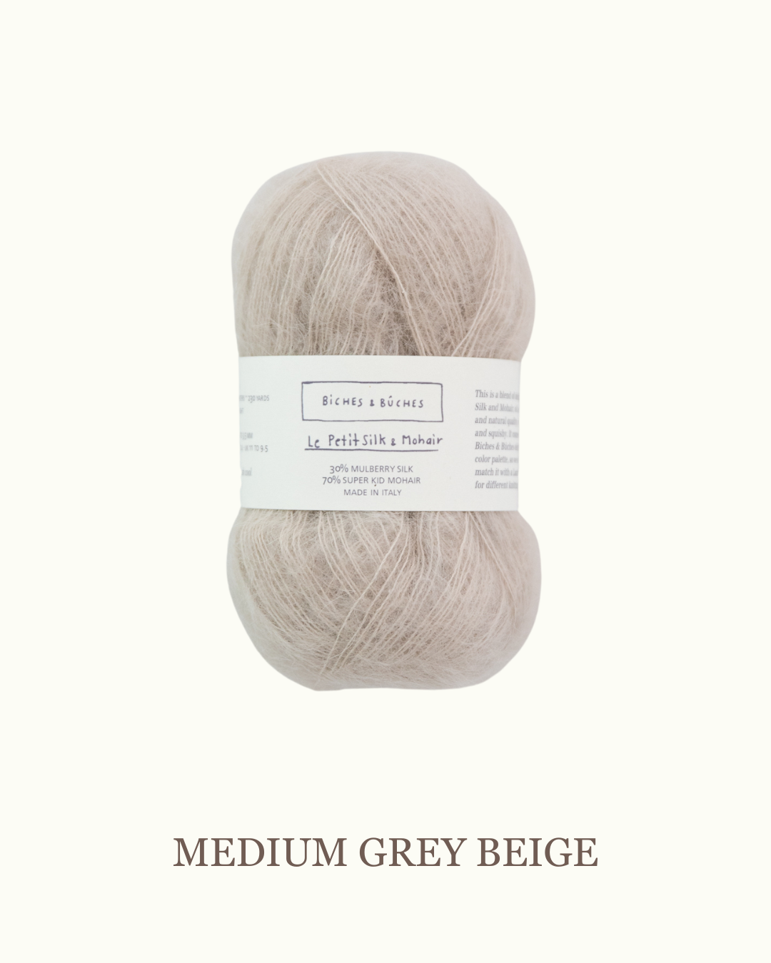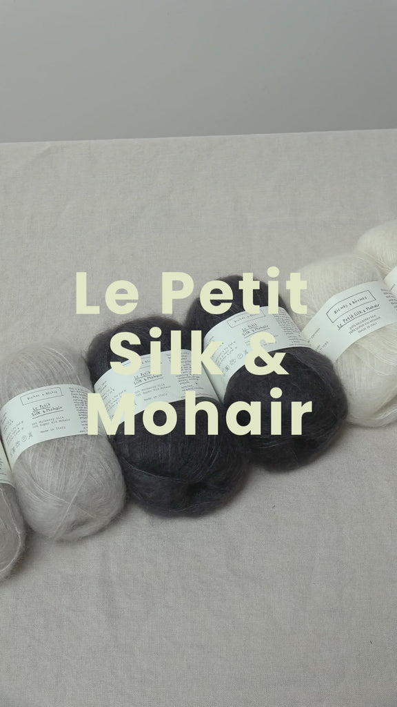 Le Petit Silk & Mohair est composée de 30% de Soie de Mûrier (Mulberry Silk) + 70% de Mohair Super Kid (Super Kid Mohair) pour cette très belle qualité, douce et luxueuse. Nous avons développé Le Petit Silk & Mohair avec nos producteurs en Italie, dans les mêmes teintes que notre Le Petit Lambswool pour pouvoir les tricoter ensemble et faire des mélanges incroyables avec ces mélanges de textures.