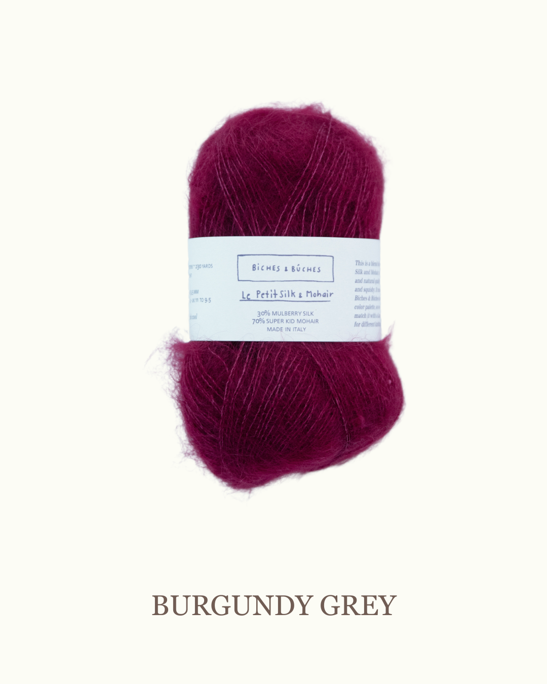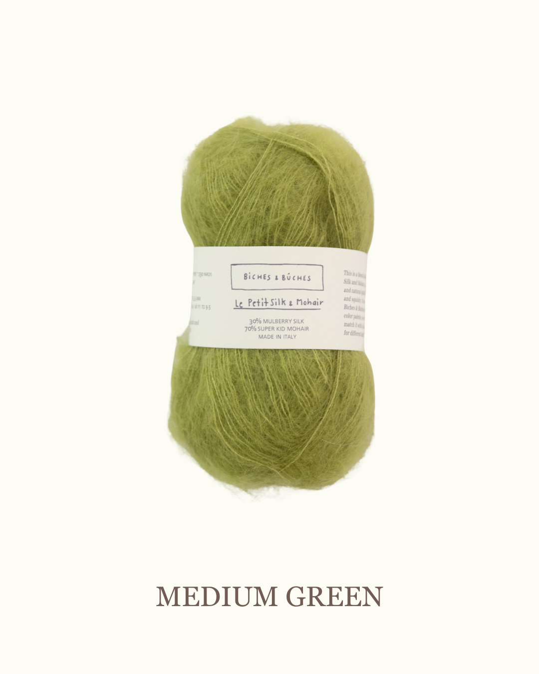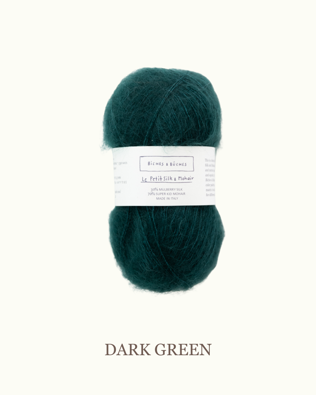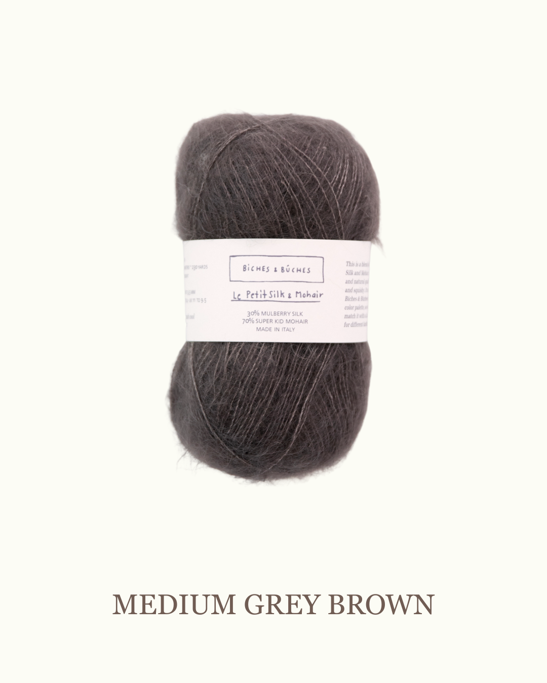 Le Petit Silk & Mohair est composée de 30% de Soie de Mûrier (Mulberry Silk) + 70% de Mohair Super Kid (Super Kid Mohair) pour cette très belle qualité, douce et luxueuse. Nous avons développé Le Petit Silk & Mohair avec nos producteurs en Italie, dans les mêmes teintes que notre Le Petit Lambswool pour pouvoir les tricoter ensemble et faire des mélanges incroyables avec ces mélanges de textures.