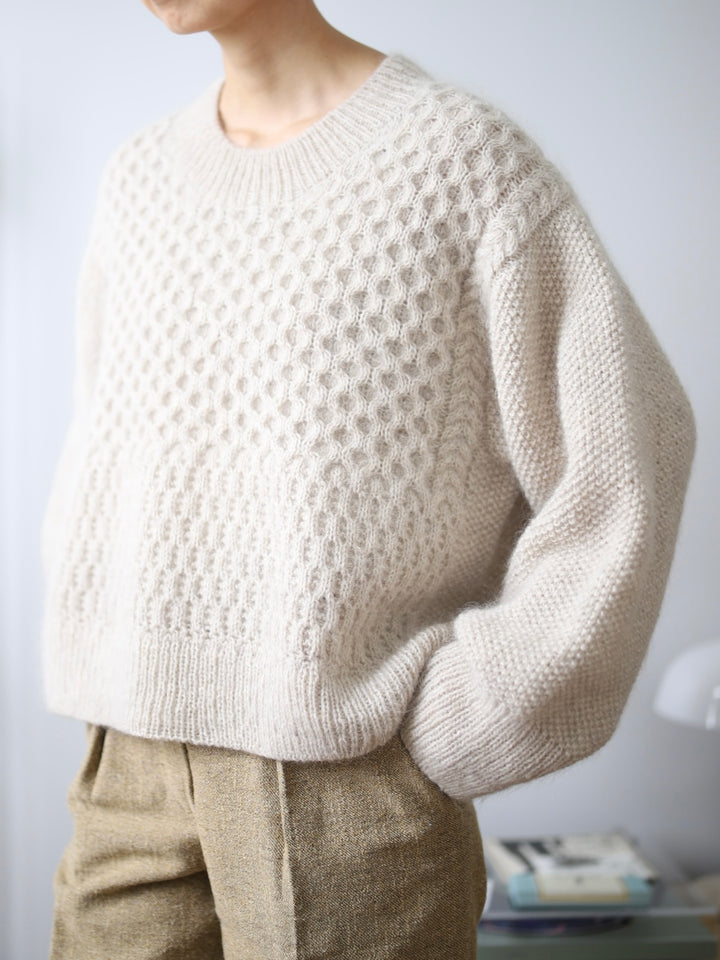 Pour les Special December Boxes, nous sommes heureuses de présenter et inclure le nouveau et magnifique Nid Sweater créé par Rui Yamamuro, tricoté avec Le Petit Lambswool et Le Petit Silk & Mohair tenus ensemble.